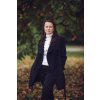 Nápaditý a přitom velice elegantní dámský flaušový kabát v jednoduché linii typu kardigan, který má skvělý střih a je doplněn páskem. Na bocích jsou kapsy. Větší klopy jsou krásným prvkem. Můžete je nechat volně, nebo vytáhnout ke krku nahoru, pokud je Vám zima. Hledá k sobě ženu, která ho vytáhne do města či na procházku se svými kamarádkami, anebo večer do divadla se společníkem. Jde o lehký přechodník, který nesmí chybět v žádné šatní skříni!