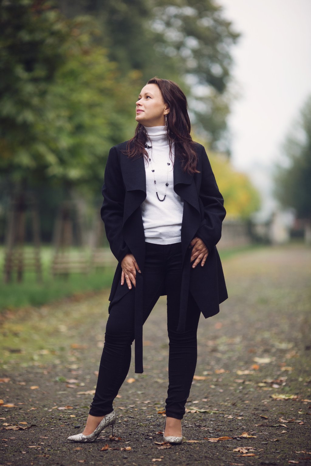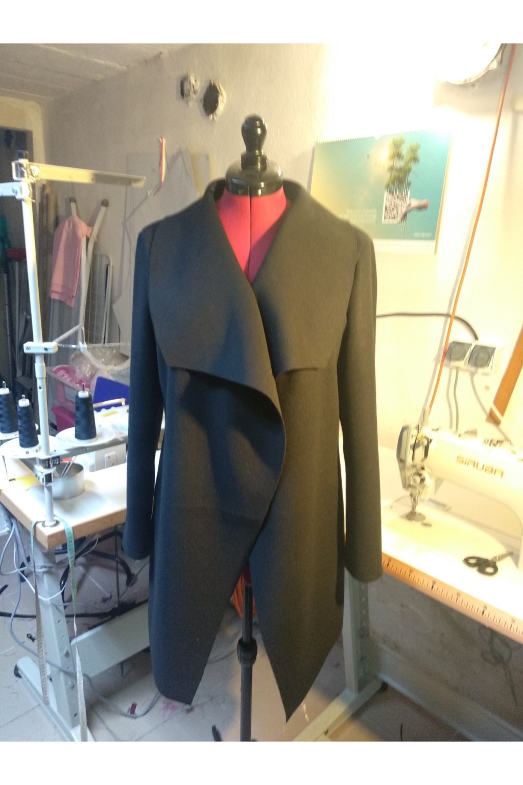 Nápaditý a přitom velice elegantní dámský flaušový kabát v jednoduché linii typu kardigan, který má skvělý střih a je doplněn páskem. Na bocích jsou kapsy. Větší klopy jsou krásným prvkem. Můžete je nechat volně, nebo vytáhnout ke krku nahoru, pokud je Vám zima. Hledá k sobě ženu, která ho vytáhne do města či na procházku se svými kamarádkami, anebo večer do divadla se společníkem. Jde o lehký přechodník, který nesmí chybět v žádné šatní skříni!