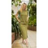 Módní dlouhé bavlněné šaty v olivové barvě. Šaty na denní nošení s krátkým rukávem.