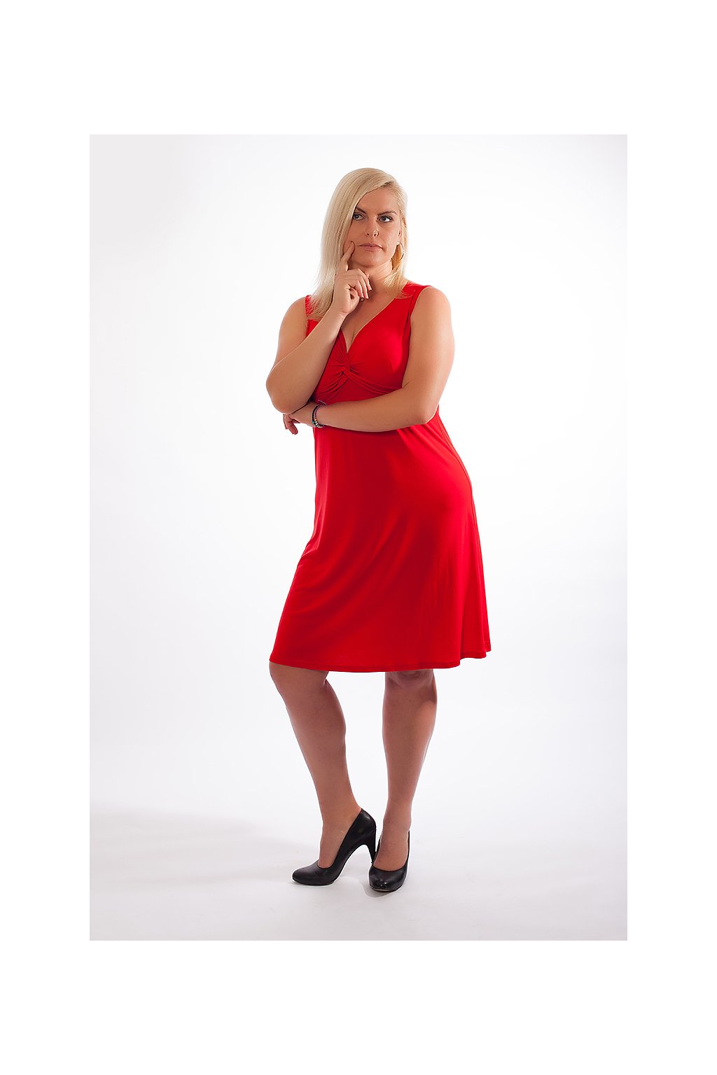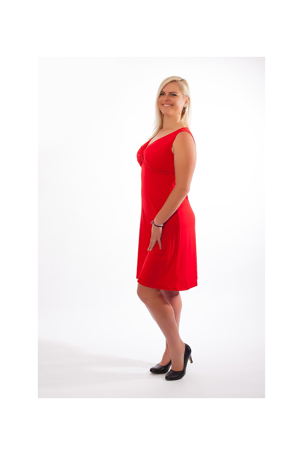 Zamilujte se do klasických červených šatů s hlubokým výstřihem. Tyto šaty jsou z řady Alexa a jsou s variantou bez rukávů. Šaty jsme schopni ušíti i v délce 95 cm, stačí napsat do poznámky v objednávce.